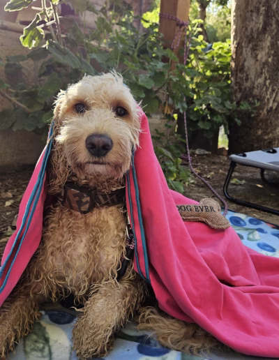 Milovaná součást naší rodiny. Jsem fenka s klidnou, vyrovnanou povahou a srdcem, které bije pro lidi. Renata s Tomem si mě vybrali nejen kvůli tomu, že jsem zdravá a plná života, ale hlavně pro moji laskavost a radost, kterou kolem sebe šířím.